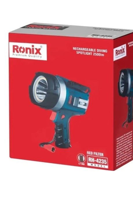 چراغ قوه رونیکس دارای ۵حالت نور دهی دارای پاوربانک وسیم شارژر تایپ سی باتری این محصول ۴۰۰۰میلی امپر است و تا یک کیلومتر را نور می دهد
